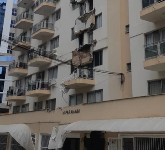 Ao menos cinco sacadas de um prédio de Balneário Camboriú, no Litoral Norte, caíram no final da tarde desta quinta-feira (12). Ninguém ficou ferido, de acordo com o Corpo de Bombeiros Militar.