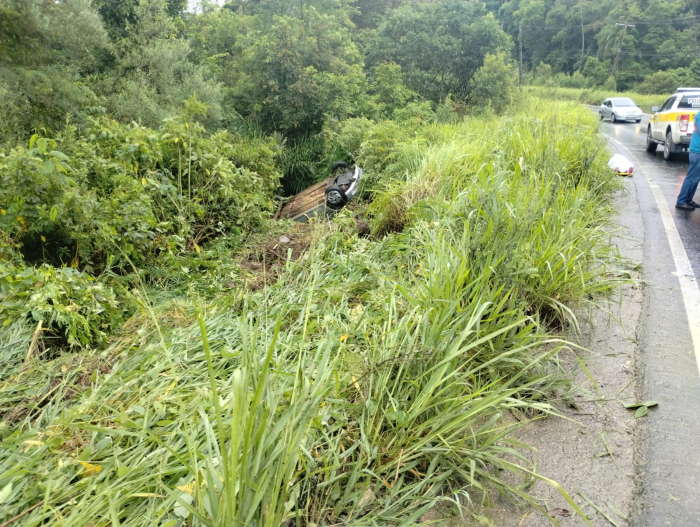Ao chegar no local, a guarnição deparou-se com o veículo Ford Fiesta caído na ribanceira. O Corpo de Bombeiros Militar (CBM) e o Serviço de Atendimento Móvel de Urgência (Samu) já estavam no local e realizavam o primeiro atendimento. De imediato, a guarnição sinalizou o local e orientou o trânsito.