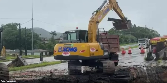 Depois de 80 horas ininterruptas de trabalho, foram concluídos os serviços de reparação da galeria de água, culminando com a aplicação do pavimento e da sinalização no km 181 da BR-101/SC, em Biguaçu. Com isso, a partir das 6h desta segunda-feira (20), o tráfego foi liberado, com duas faixas disponíveis em cada sentido da rodovia.