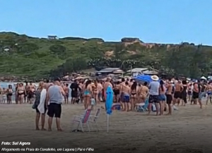 Na Praia do Cavalinho, em Laguna, próximo à Pedra do Frade, um homem de 35 anos foi arrastado por uma corrente de retorno. Ele e sua filha, menor de idade, foram resgatados por surfistas e um guarda-vidas que estavam de folga.
