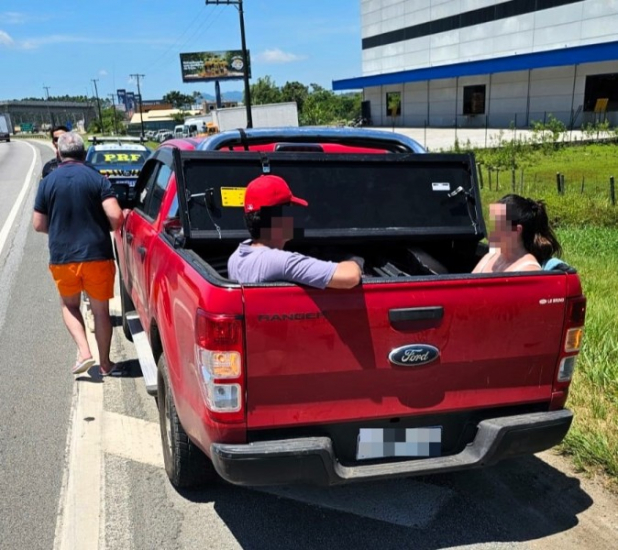 Dois turistas argentinos foram flagrados sendo transportados no compartimento de carga de uma caminhonete Ford Ranger, na BR-101 em Itapema. O flagrante aconteceu na manhã desta segunda-feira, dia 8, enquanto o veículo se deslocava de Itapema para Florianópolis.