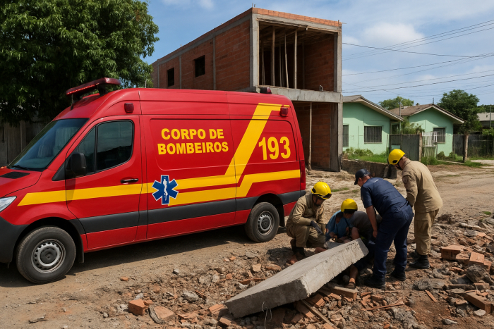 Segundo as primeiras informações, um homem foi atingido por uma laje de concreto em uma obra localizada na rua Ezidro José Rodrigues.