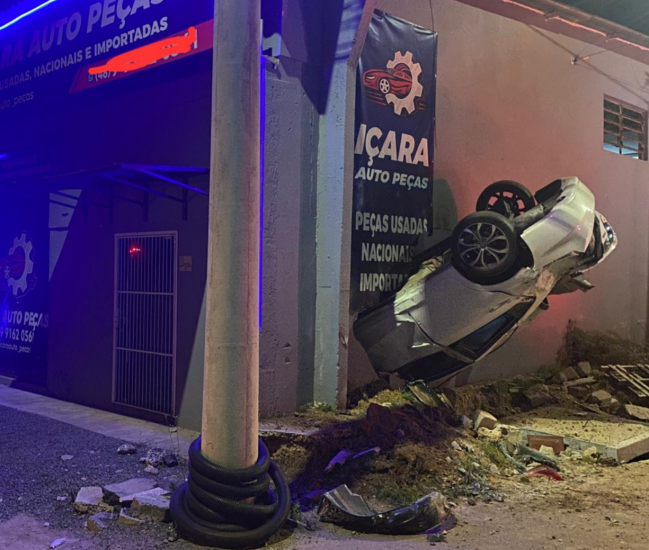 A informação é de que o acidente de transito envolveu um veiculo Honda Civic Branco que colidiu na parede de um estabelecimento comercial, localizado nas margens da rodovia. No local foi confirmada a natureza da ocorrência que tratava apenas de danos matérias. O veículo ficou preso na parede do estabelecimento.