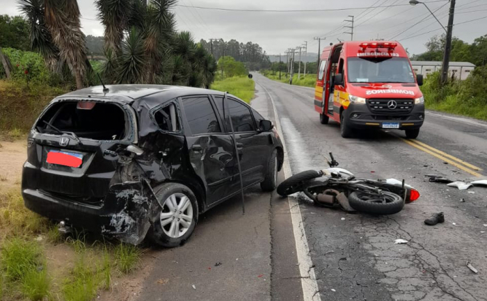 A guarnição do auto socorro de urgência seguiu até o local e constatou se tratar de um acidente de transito envolvendo o veiculo Honda Fit e uma a motocicleta. O condutor do veículo nada sofreu. Já o motociclista, de 21 anos, encontrava-se no meio da via em decúbito dorsal consciente e orientado com sinais vitais normais.