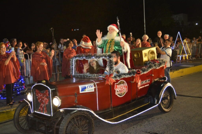 A magia do Natal Tubarão Luz 2025 continua nesta quarta-feira (3) com um dos momentos mais aguardados da programação: a Chegada do Papai Noel, a partir das 19h30. O bom velhinho desembarca na cidade em um grande desfile natalino que promete emocionar crianças e adultos, reunindo música, dança e encantamento pela Avenida Marcolino Martins Cabral.