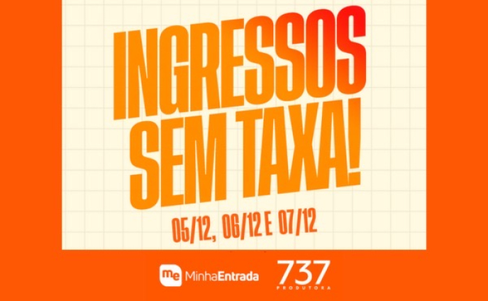 A 737 Produtora, em parceria com sua ticketeira oficial, a Minha Entrada, lança uma promoção inédita para o público neste final de semana. Entre esta sexta (5) e domingo (7), todos os eventos da produtora estarão disponíveis sem cobrança de taxa no site oficial.