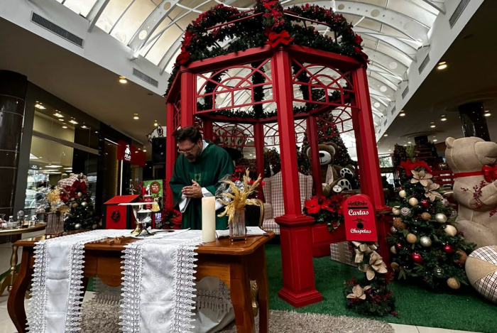 A manhã desta quinta-feira (26) no Farol Shopping, foi marcada por uma comemoração cheia de emoções. Isso porque, o shopping completa 17 anos de atividade. O momento foi celebrado com a tradicional missa de ação de graças no mall central presidida pelo Padre Edison müller, que também deu início às festividades de Natal.