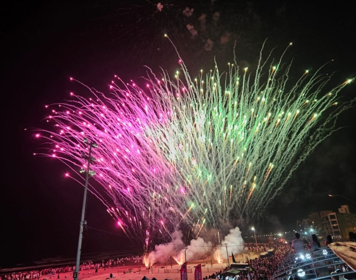 Na Praia do Mar Grosso, um dos destaques da noite foi a exibição de fogos de artifício que iluminou o céu por 15 minutos ininterruptos.