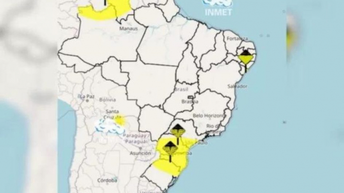 Santa Catarina está sob “alerta amarelo” com “perigo potencial” de tempestades e chuvas intensas, em razão da passagem de um ciclone extratopical. De acordo com o Instituto Nacional de Meteorologia (Inmet), outros setes estados também estão em monitoramento por conta do fenômeno: Paraná, São Paulo, Mato Grosso do Sul, Rio Grande do Sul, Amazonas, Roraima e Sergipe.